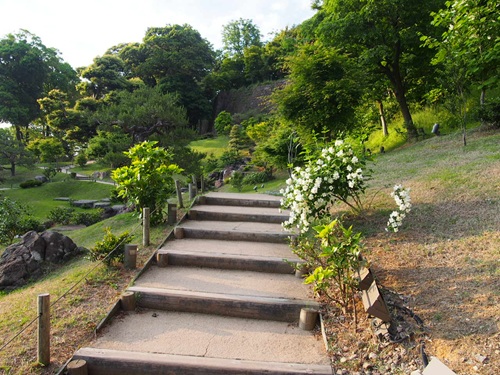 石垣を庭園の構成要素として取り入れ、