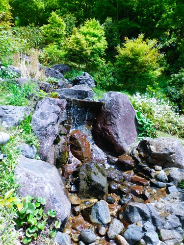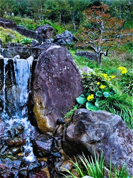 V字型の石桶から落下する落差9mに及ぶ石垣の滝