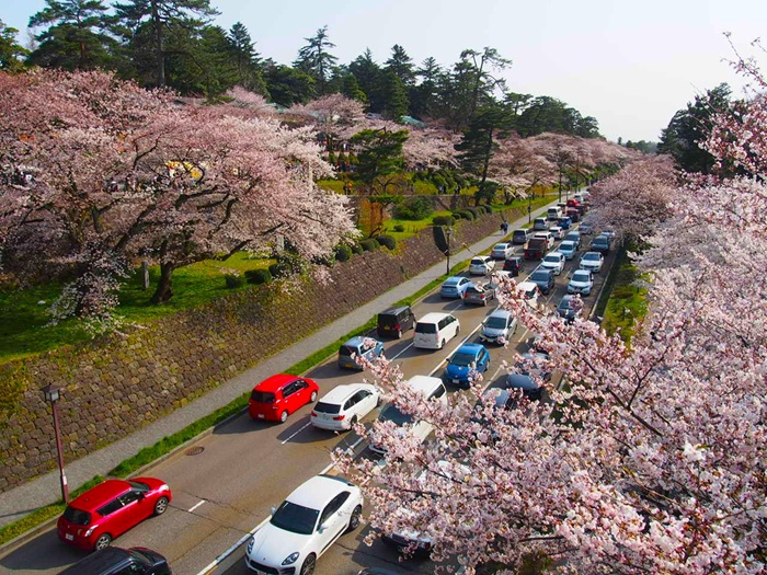 ここから見える金沢城と兼六園の間を百軒掘りと言います。